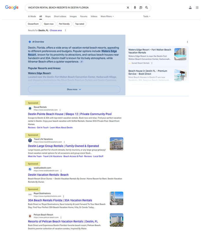 Google’s AI-driven results now elevate authoritative, context-rich content into premium “answer” spaces that sit above traditional ad blocks. This shift rewards depth, clarity, and trust — not just bids. In other words, the most valuable real estate in search is no longer an ad slot; it’s the organic content cited by generative results.